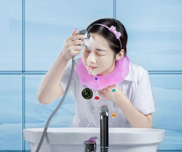 2、硅膠氣墊圍擋功能用于站立式?jīng)_洗臉部,不會(huì)打濕衣物和皮膚,產(chǎn)品采用弧形斜面擋水效果結(jié)構(gòu),可以有效地?fù)踝∷ㄋ臑R并且順滑流出。