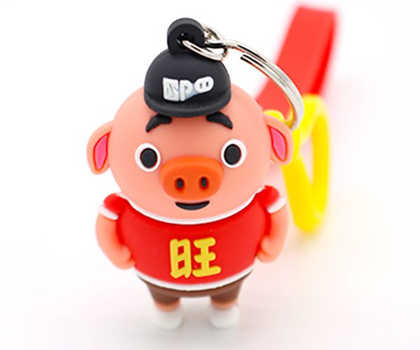 此款創(chuàng)意硅膠鑰匙扣,按照小豬的模樣來制造,中間紋著旺仔,讓本來可愛的公仔有著調(diào)皮的模樣。